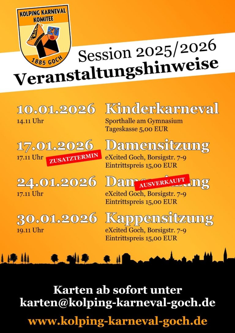 Veranstaltungs-Flyer für die Karnevalssession 2026.